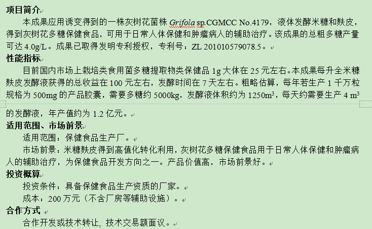 灰树花发酵全米糠和麸皮复合原料生产灰树花多糖保健食品技术