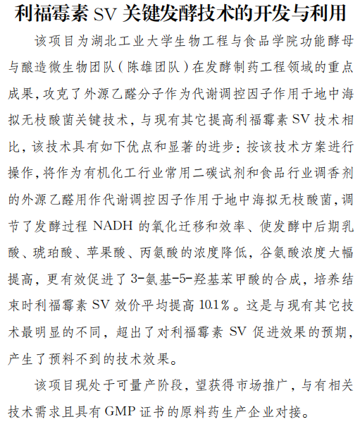 利福霉素 SV 关键发酵技术的开发与利用