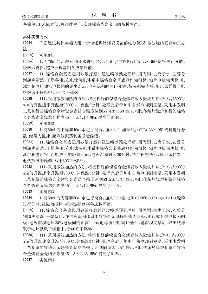 一种镍铬烤瓷义齿的电泳沉积-微波烧结复合加工方法