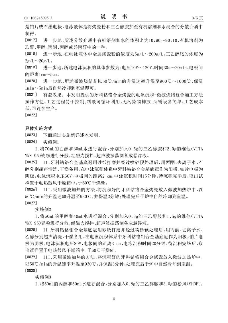 一种钴铬烤瓷义齿的电泳沉积-微波烧结复合加工方法