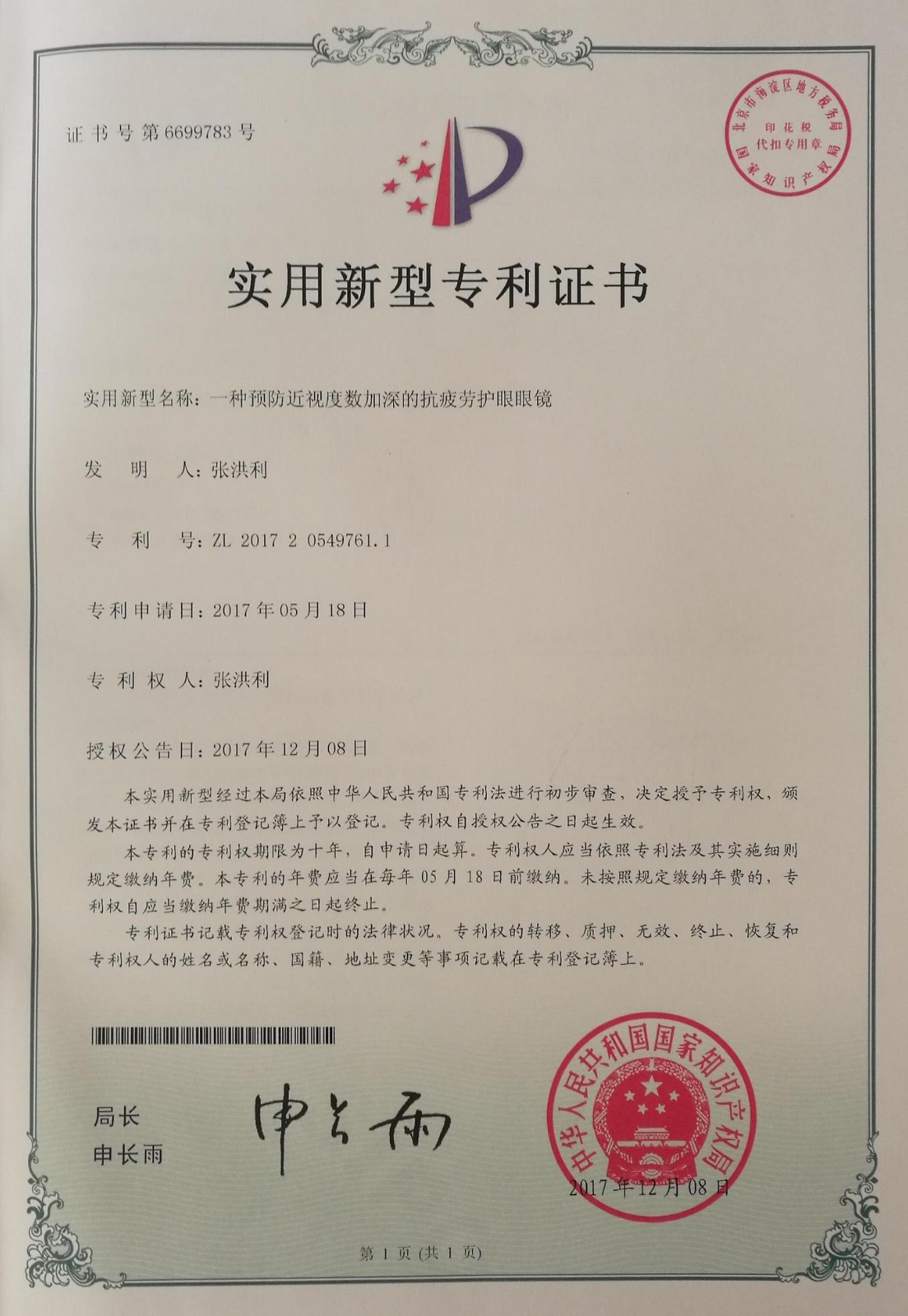 一种预防近视度数加深的抗疲劳护眼眼镜
