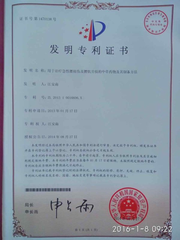 用于治疗急性腰扭伤及腰肌劳损的中草药物及其制备方法