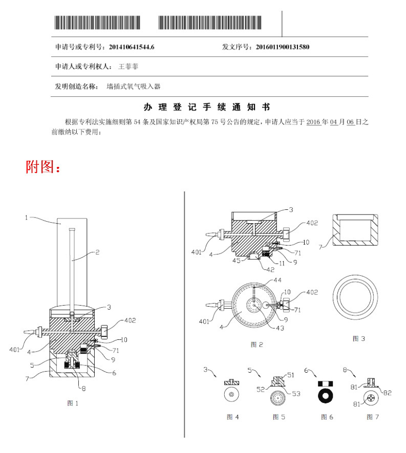 墙插式氧气吸入器