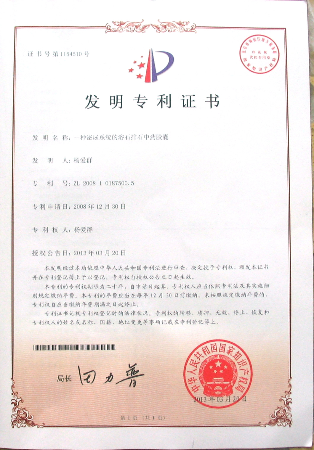 一种无痛性排石的泌尿系统的溶石排石中药胶囊