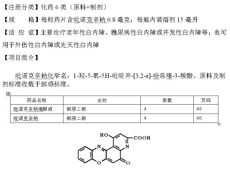 吡诺克辛钠、吡诺克辛钠滴眼液—技术转让报告