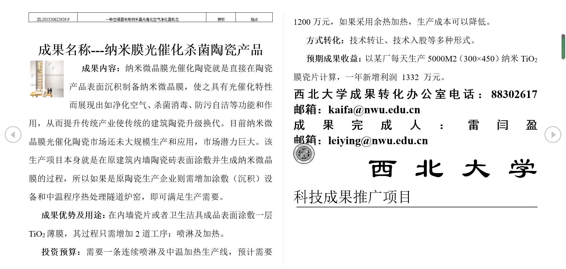 纳米膜光催化杀菌陶瓷产品