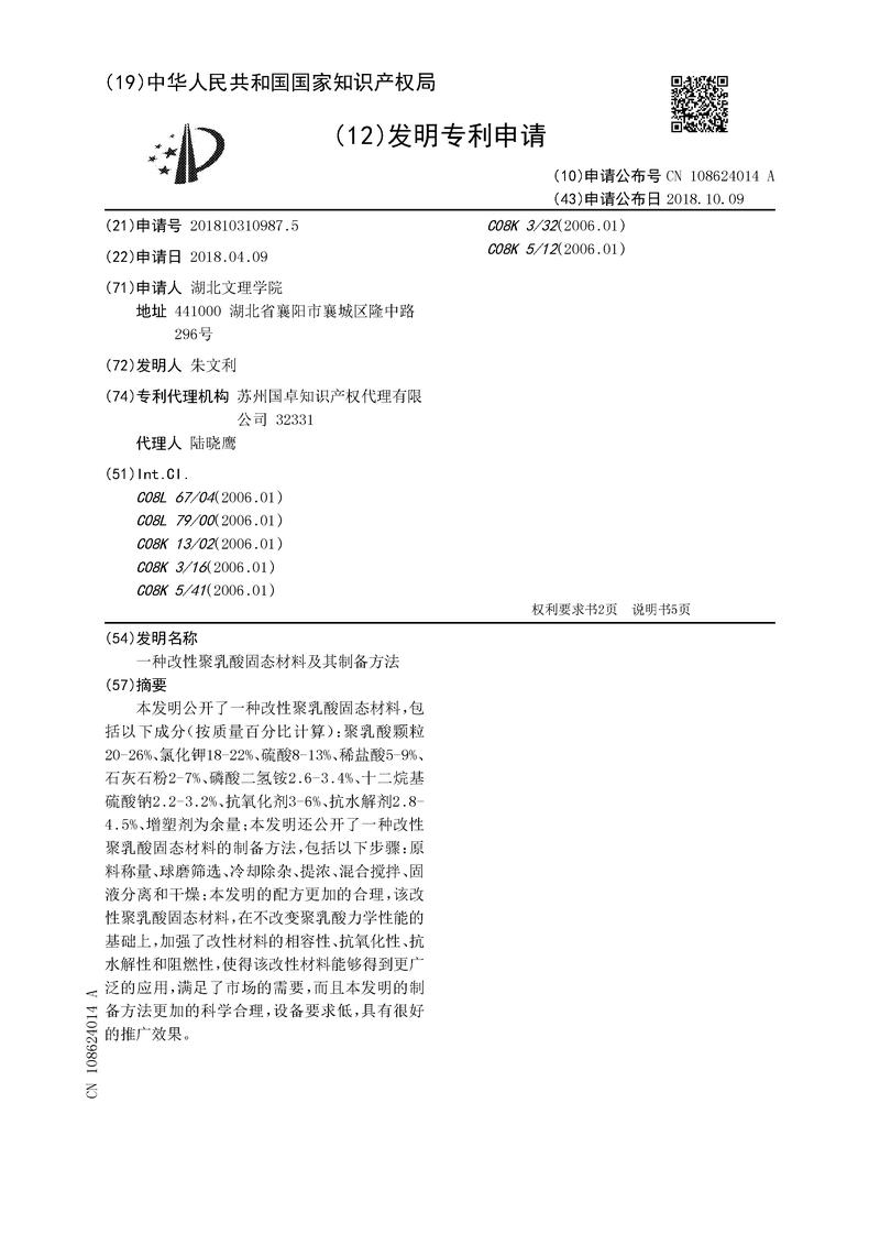 一种改性聚乳酸固态材料及其制备方法