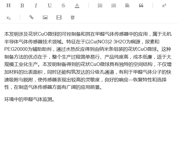 一种花状CuO微球制备方法及其在甲醛气体传感器应用