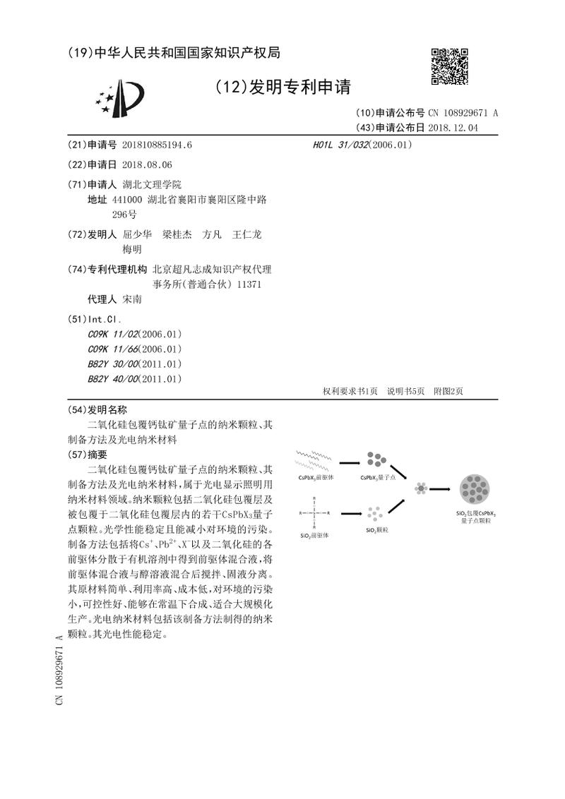 二氧化硅包覆钙钛矿量子点的纳米颗粒、其制备方法及光电 纳米材料