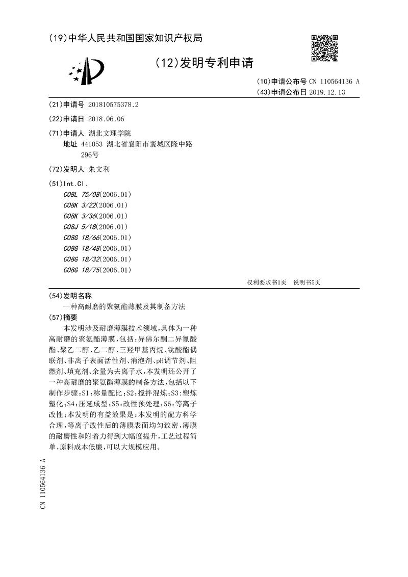 一种高耐磨的聚氨酯薄膜及其制备方法