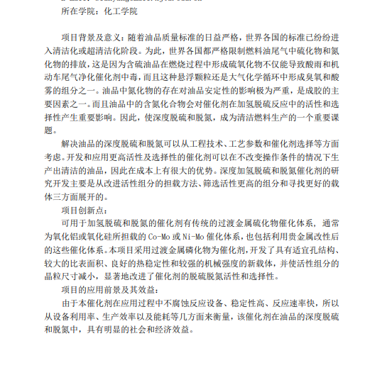 基于清洁油品生产的高效脱硫、脱氮催化剂
