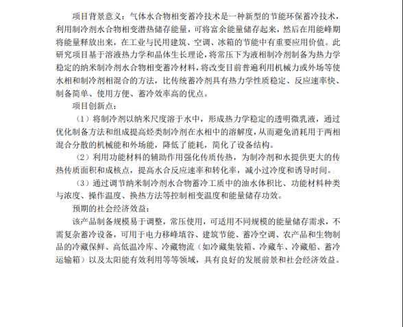 纳米制冷剂水合物相变蓄冷材料的开发和应用
