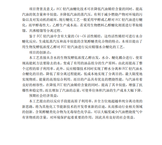 生物发酵低浓度乙醇与轻汽油醚化关键技术