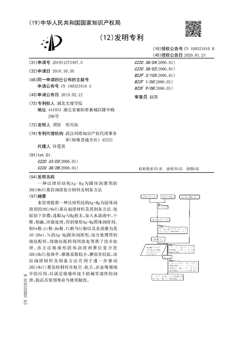一种以球形结构Ag-Mg为固体润滑剂的20CrMnTi基自润滑复合材料及制备方法