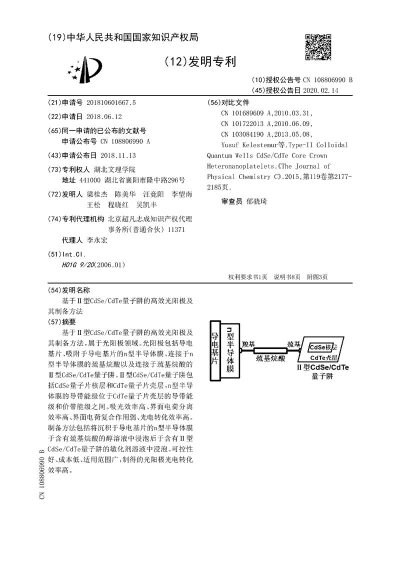基于Ⅱ型CdSe/CdTe量子阱的高效光阳极及其制备方法