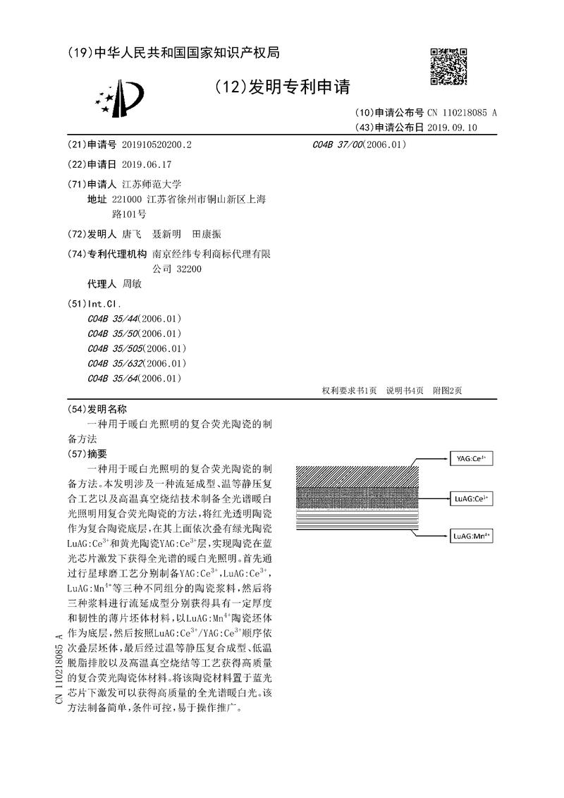 一种用于暖白光照明的复合荧光陶瓷的制备方法