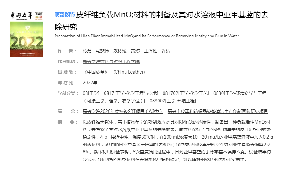皮纤维负载MnO;材料的制备及其对水溶液中亚甲基蓝的去除研究