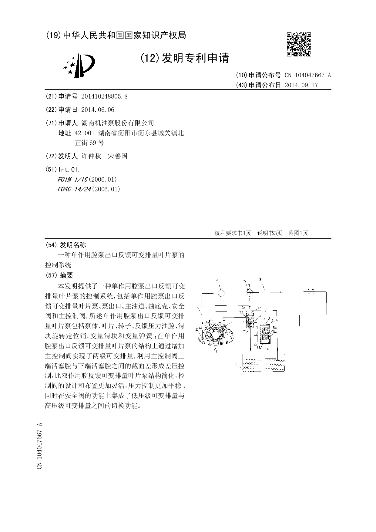 一种单作用腔泵出口反馈可变排量叶片泵的控制系统