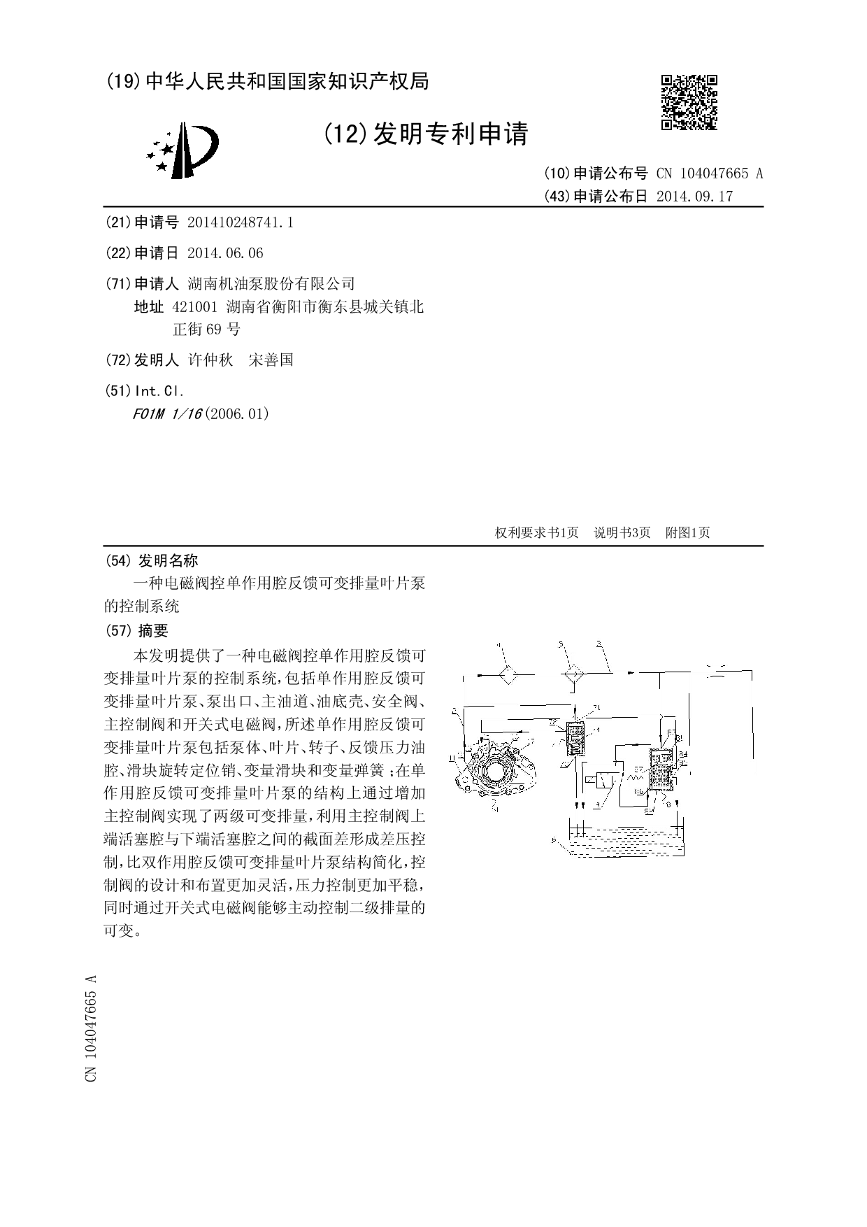 一种先导式电磁阀单腔反馈可变排量叶片泵的控制系统