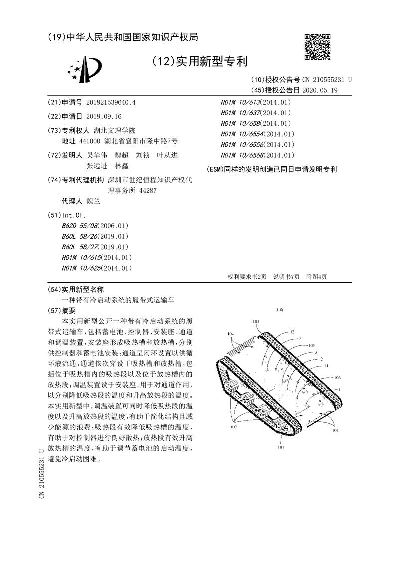 一种带有冷启动系统的履带式运输车