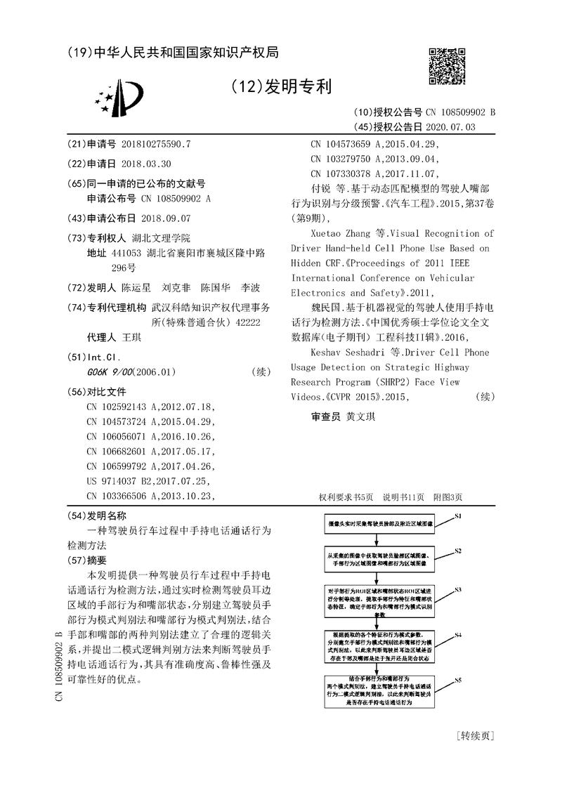 一种驾驶员行车过程中手持电话通话行为检测方法