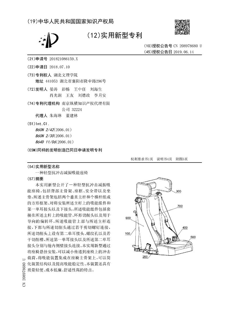 一种轻型抗冲击减振吸能座椅