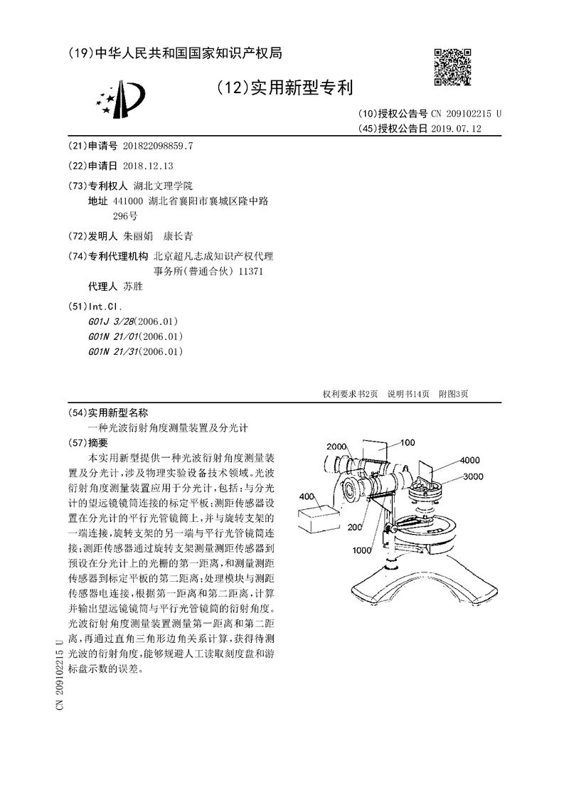 一种光波衍射角度测量装置及分光计