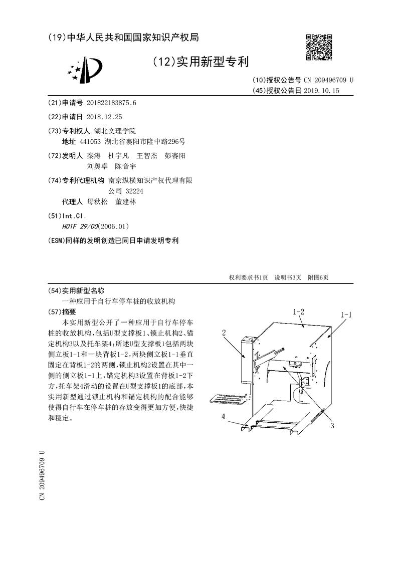 一种应用于自行车停车桩的收放机构