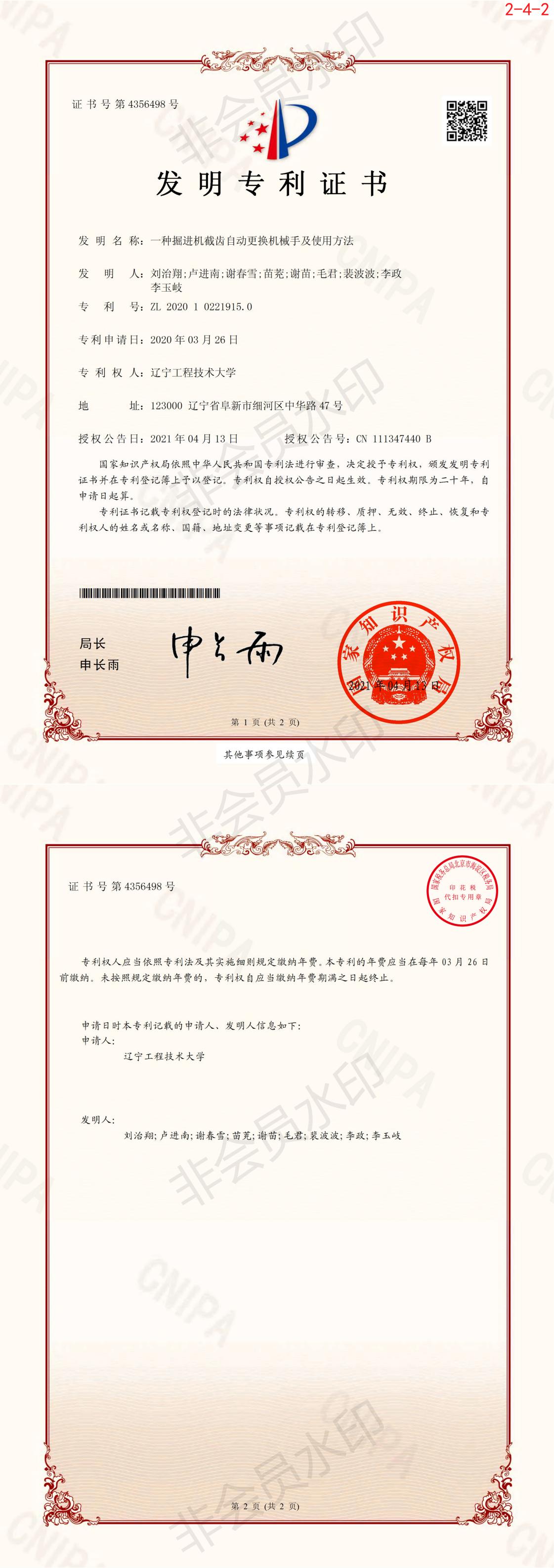 一种掘进机截齿自动更换机械手及使用方法