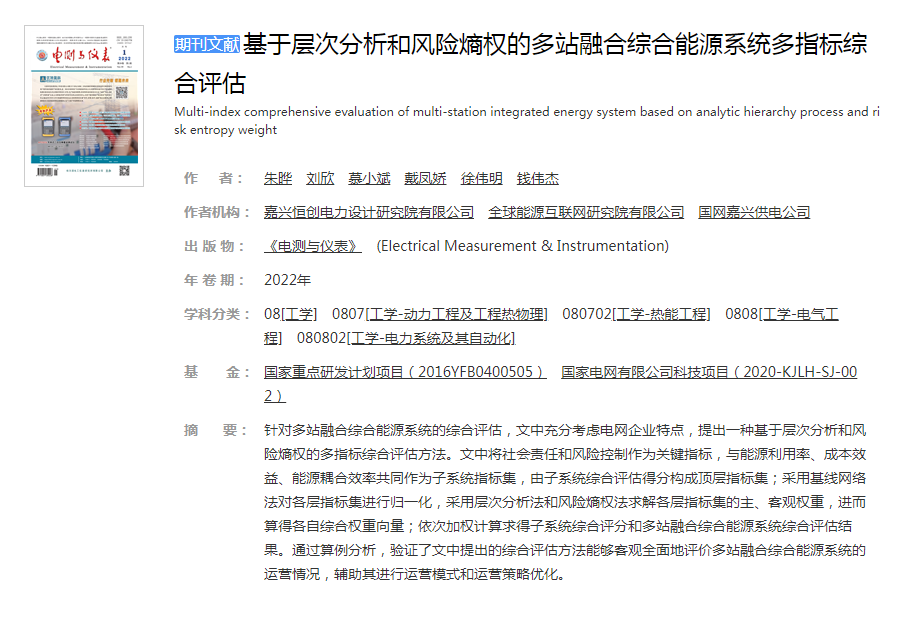 基于层次分析和风险熵权的多站融合综合能源系统多指标综合评估