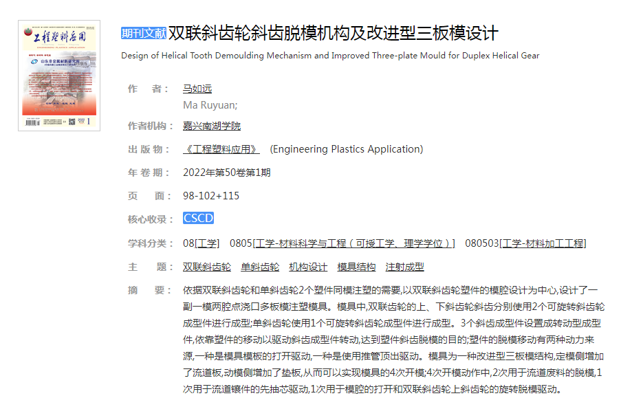 双联斜齿轮斜齿脱模机构及改进型三板模设计