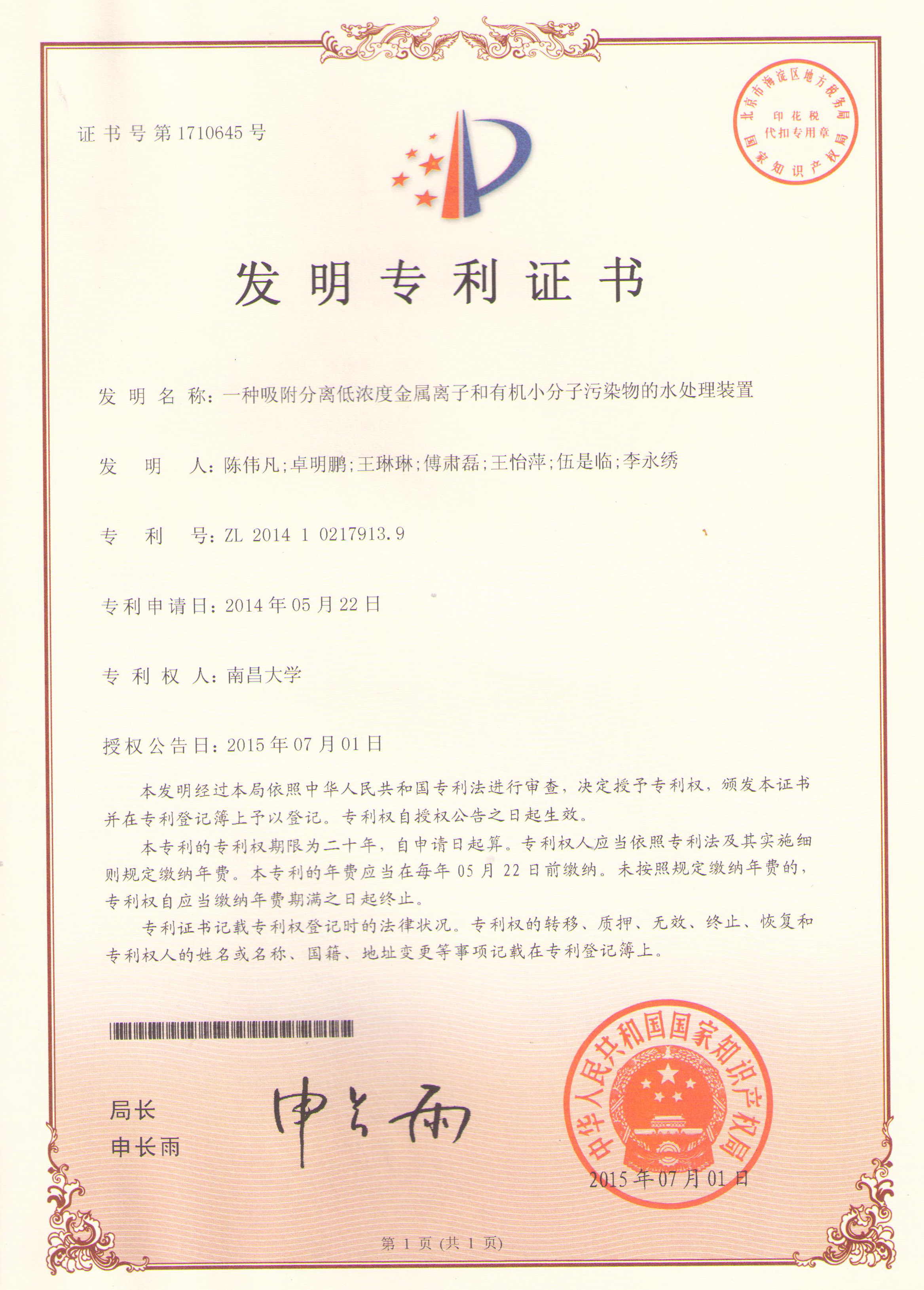 一种吸附分离低浓度金属离子和有机小分子污染物的水处理装置