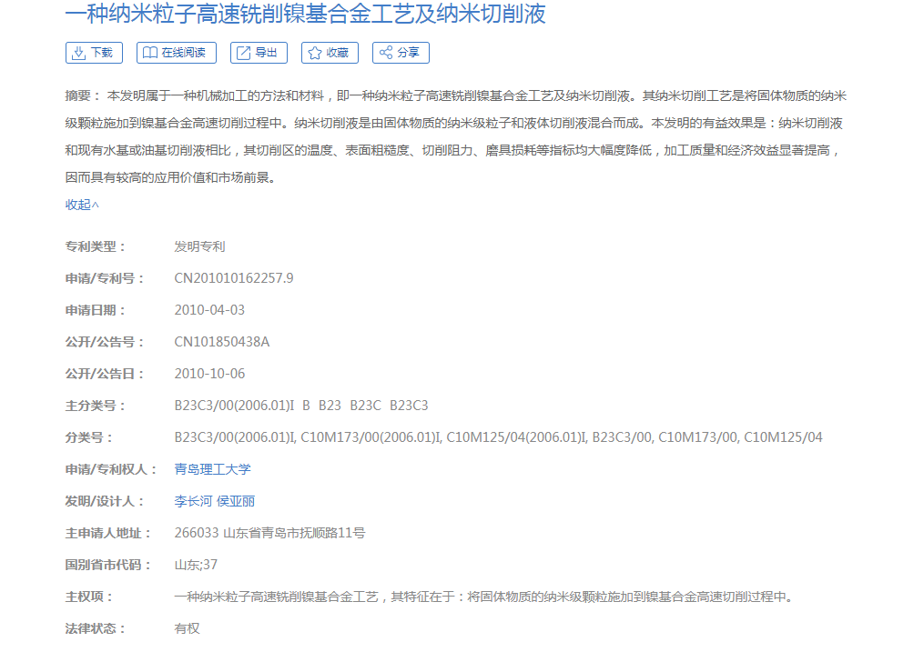 一种纳米粒子高速铣削镍基合金工艺及纳米切削液