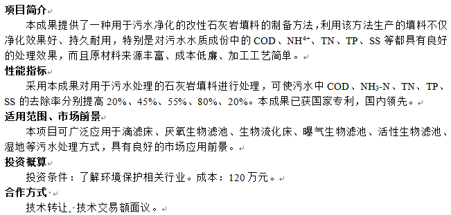 用于污水净化的改性石灰岩填料的制备方法