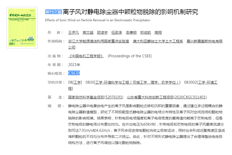 离子风对静电除尘器中颗粒物脱除的影响机制研究