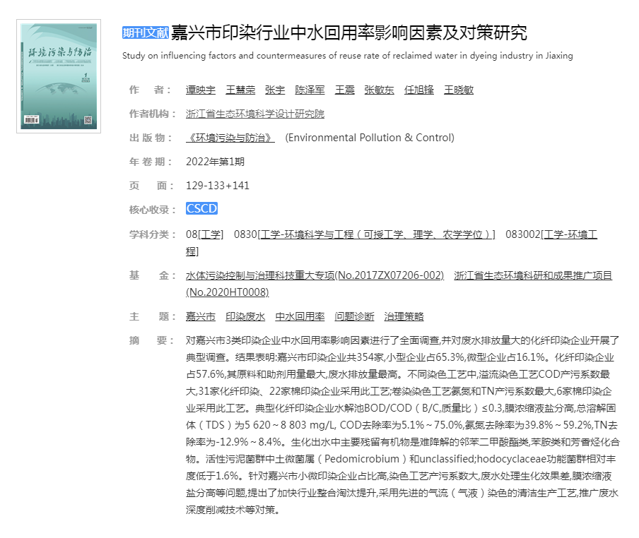嘉兴市印染行业中水回用率影响因素及对策研究