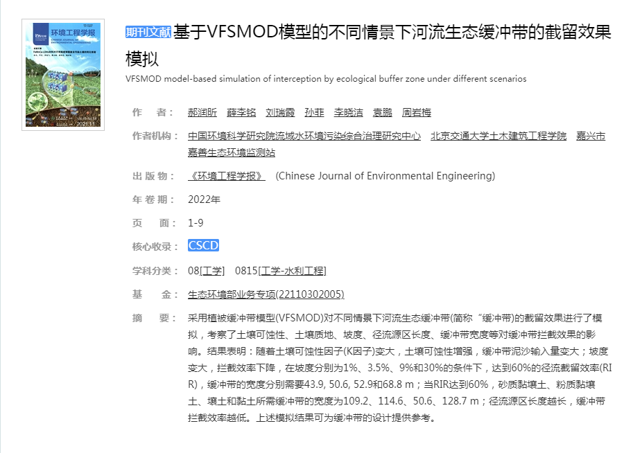 基于VFSMOD模型的不同情景下河流生态缓冲带的截留效果模拟