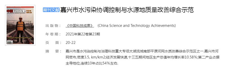 嘉兴市水污染协调控制与水源地质量改善综合示范