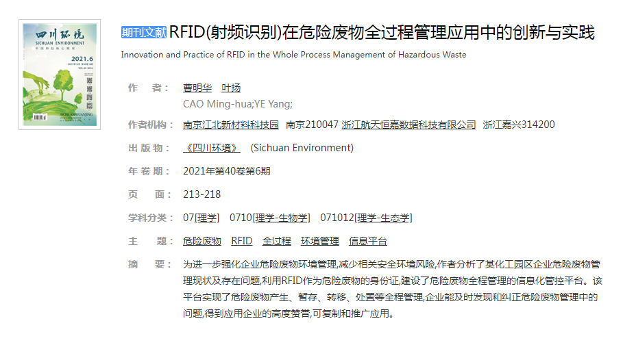 RFID(射频识别)在危险废物全过程管理应用中的创新与实践