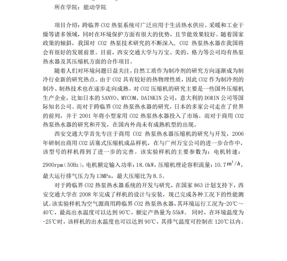 跨临界二氧化碳热泵热水器及其压缩机的研究与开发
