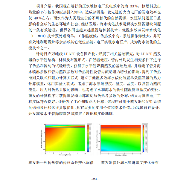 大型低温多效海水淡化装置国产化及热力系统计算软件研 发