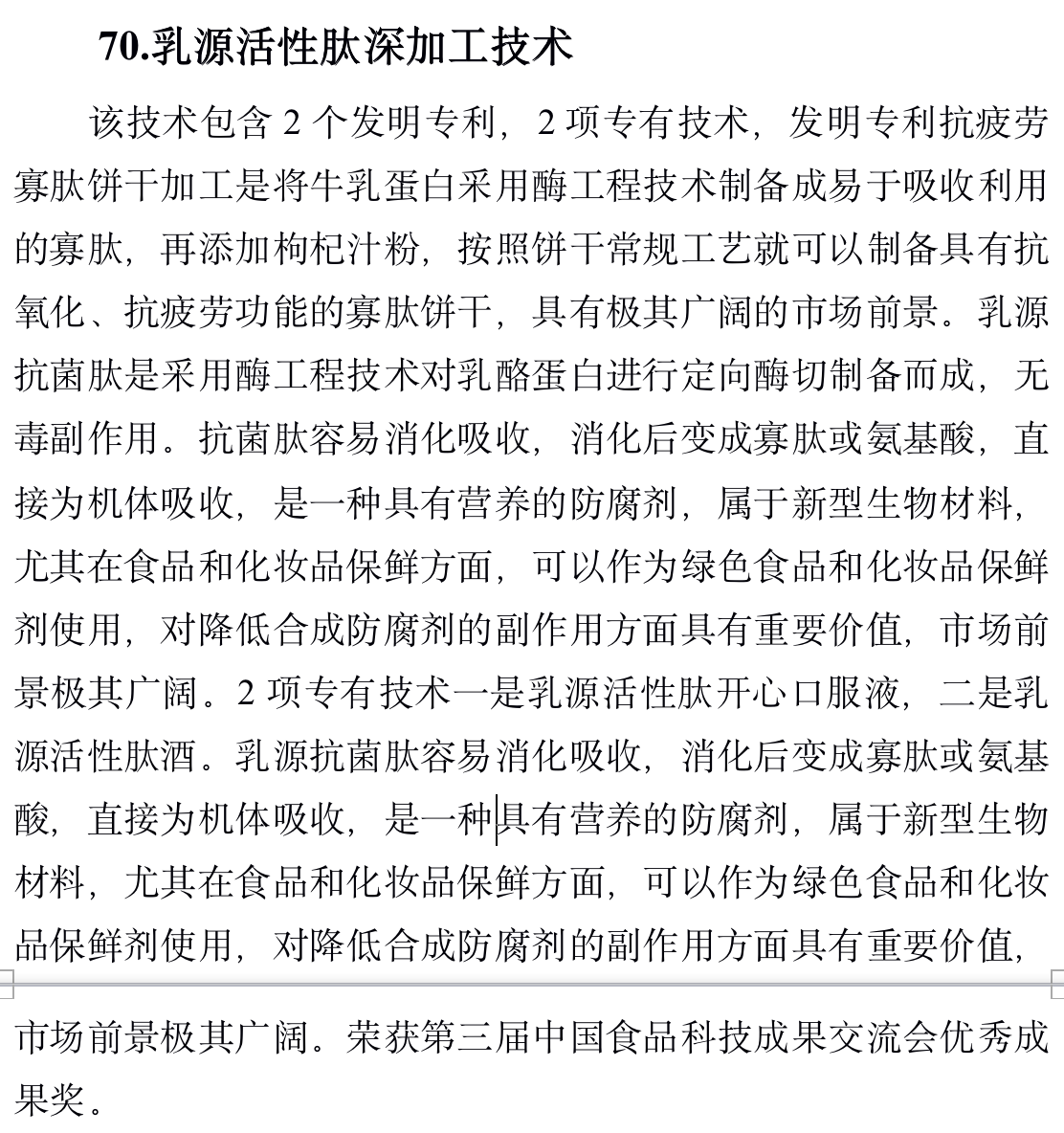 乳源活性肽深加工技术