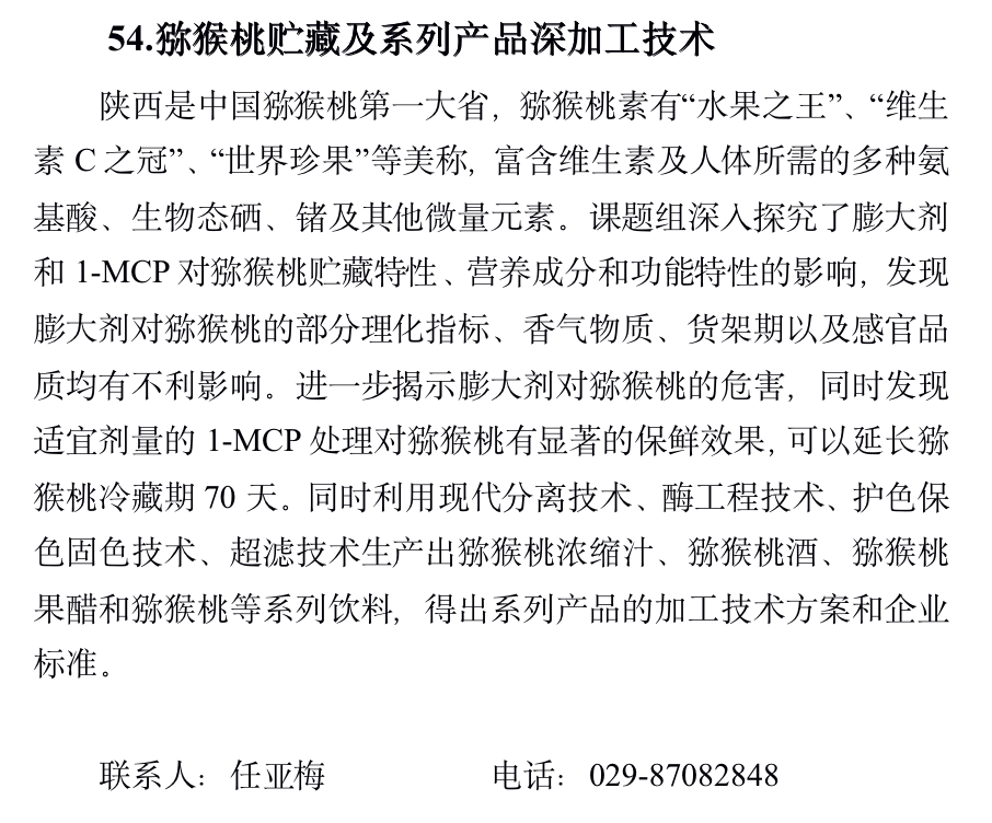 猕猴桃贮藏及系列产品深加工技术