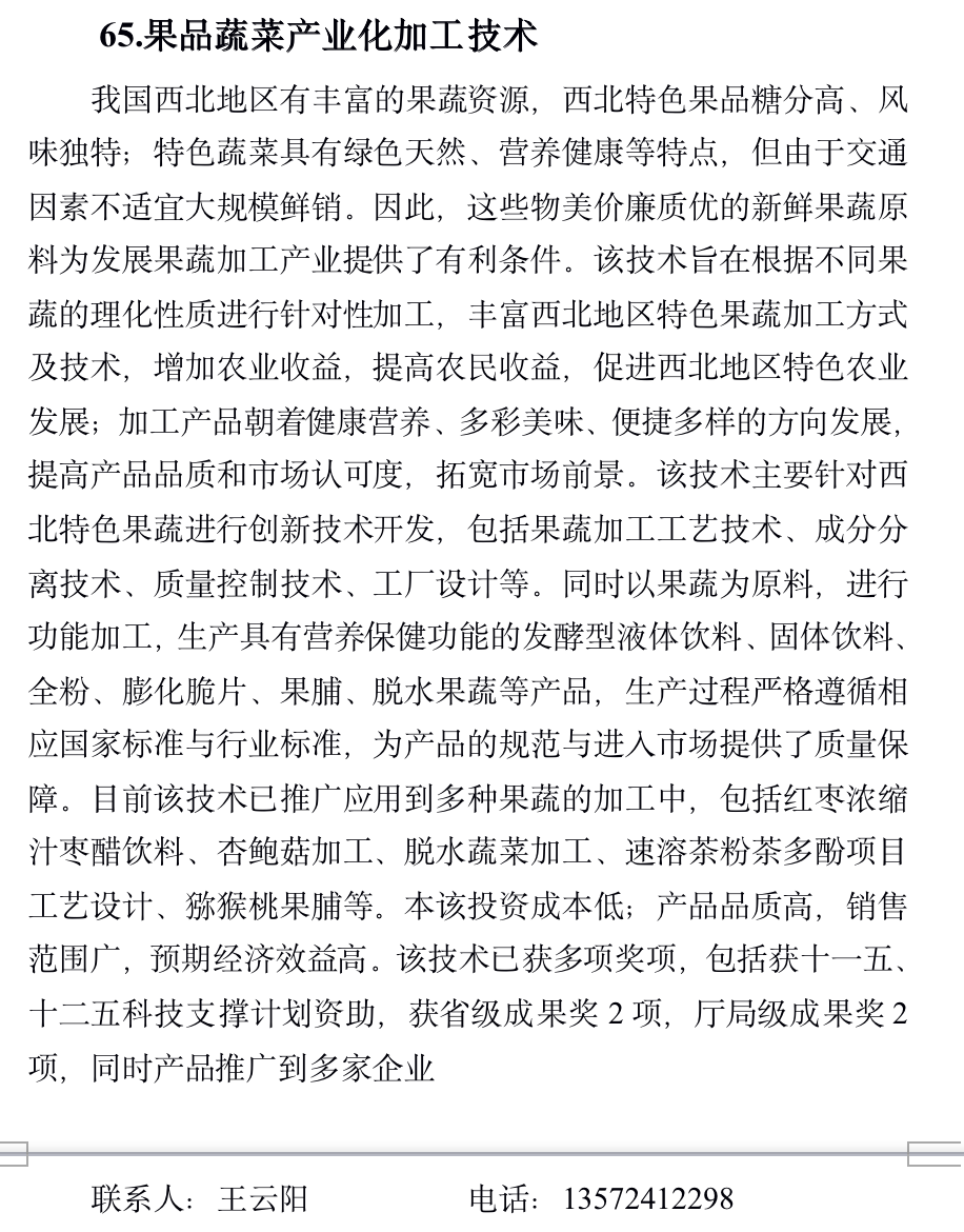 果品蔬菜产业化加工技术