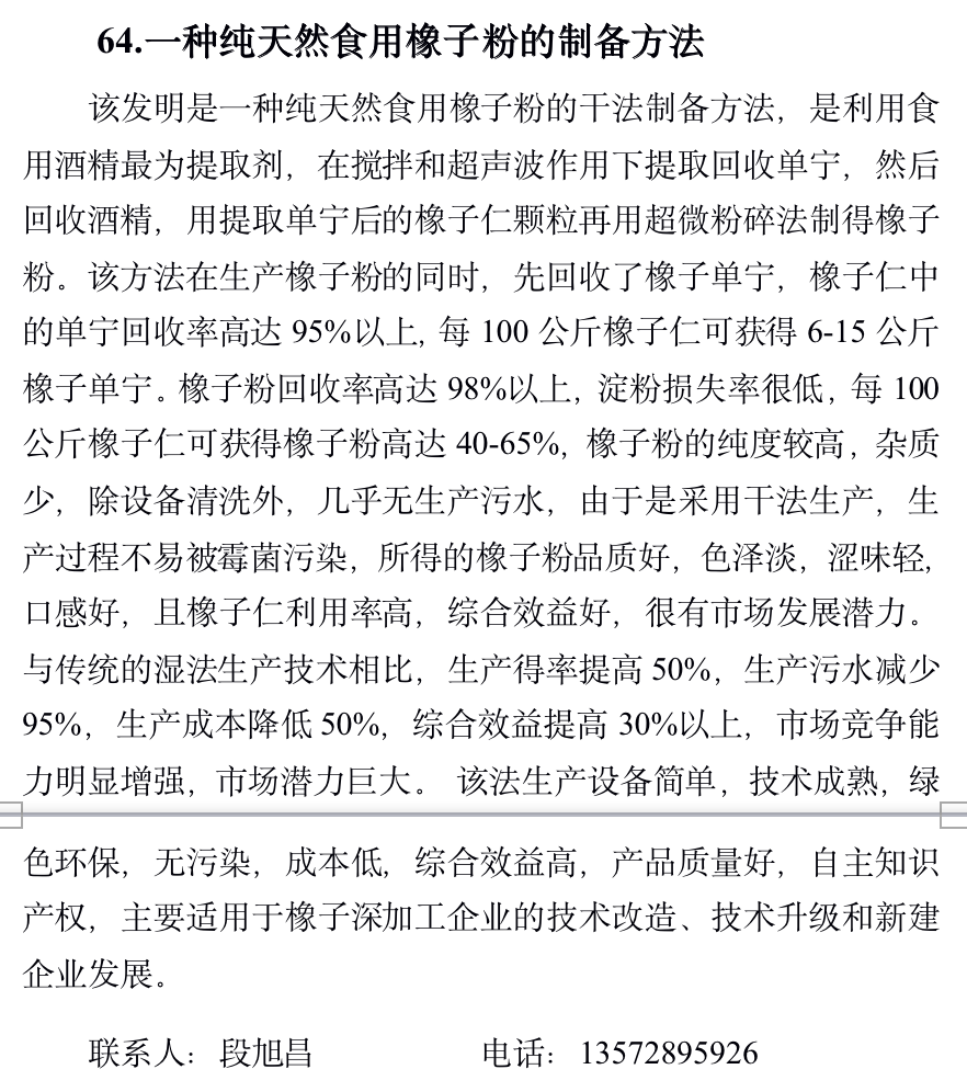 一种纯天然食用橡子粉的制备方法