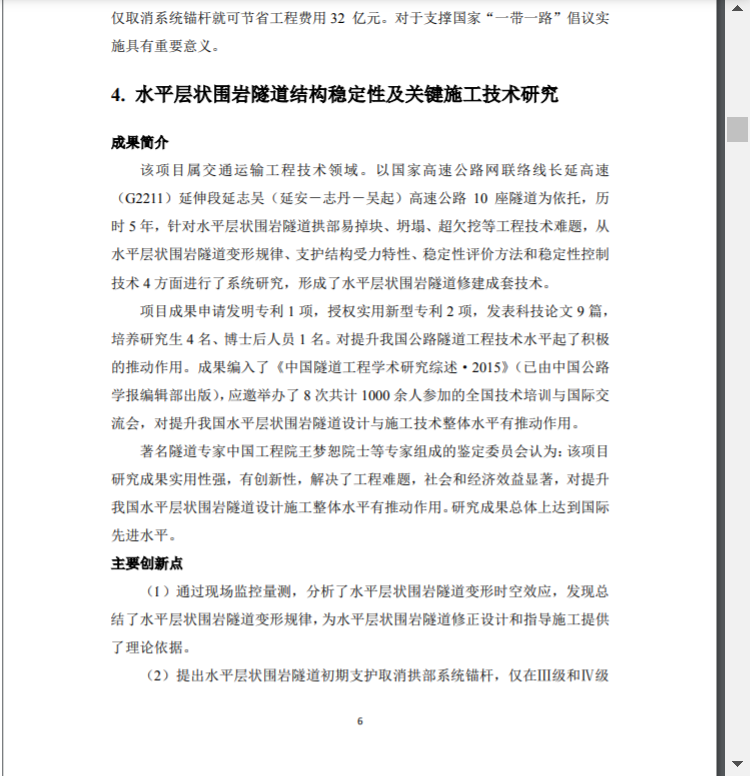 水平层状围岩隧道结构稳定性及关键施工技术研究