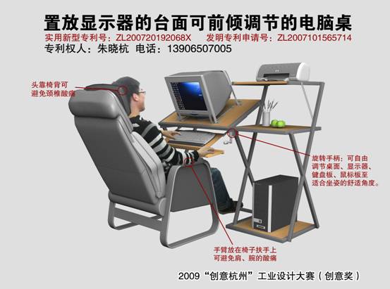 置放显示器的台面可前倾调节的电脑桌
