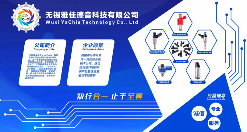 无锡雅佳德音科技有限公司位于洛社高新区,被评为“科技型中小企业”,是江苏省民营企业 优秀代表。公司注重知识产权的保护,累计申请专利30余项,主导的行业标准《汽车燃油压力调 压阀总成技术条件》和团标《甲醇燃料供给泵技术条件及试验方法》等即将发布,国家标准《汽 油机缸内直喷燃油系统词汇》和行业标准《汽油机缸内直喷燃油系统供油泵总成可靠性试验方法》 等3项标准正在撰写和申请中。
