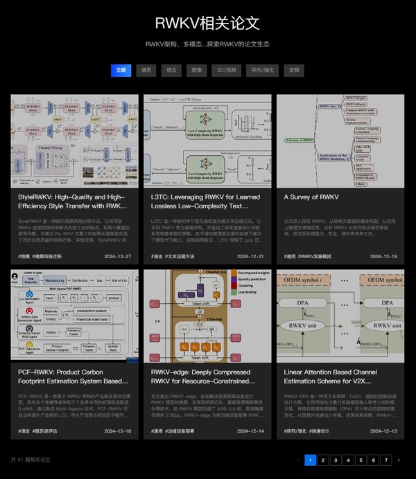 目前#官网已记录了40多篇由多家高校和企业撰写的使用RWKV的论文,证明了 RWKV在语言、多模态、时间序列等领域的可行性和能力。