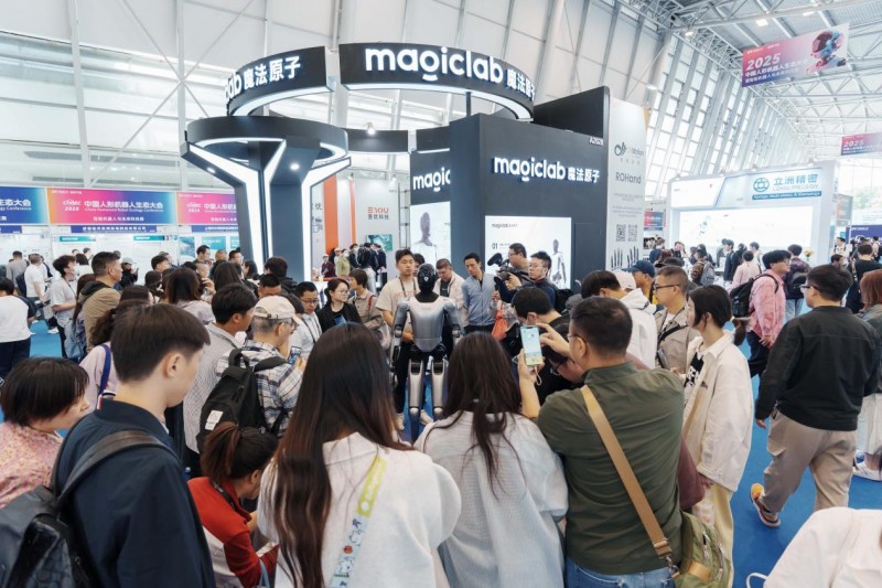 在展会期间,魔法原子的人形机器人“小麦”凭借其流畅的对话能力和拟人的动作互动,成为展区的焦点,吸引了众多行业人士、专家学者及观众驻足交流。